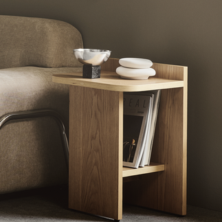 Ismo's versatile table design is ideal for a wide range of uses. It can function as an elegant side table in the living room or as a practical bedside table in a hotel room. A special feature of the design is that the table appears closed from the front and open from the side, adding an extra layer of refinement to the design. Sami Kallio drew inspiration from architecture, especially from brutalism, aiming to create a piece of furniture that functions like a building or a room within a room.