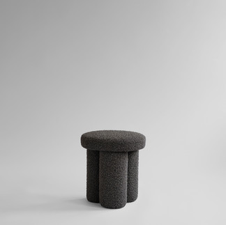 The Big Foot Stools come in a variety of finishes include, boucle, nubuck, and sheepskin, linen. Designed by Kristian Sofus Hansen & Tommy Hyldahl